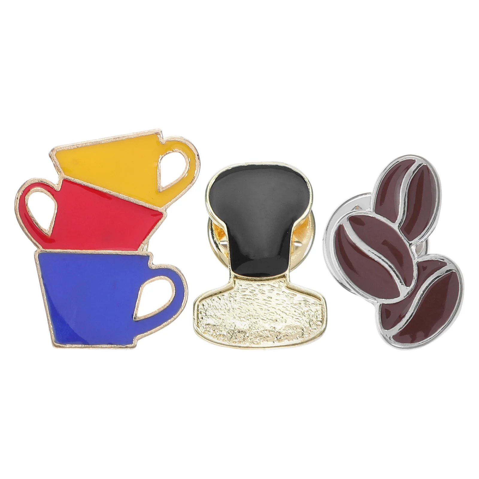 3Pcs Coffee Cup Brooch Pin Exquisite Metal Coffee Bean Tamper Lapel Pins for Hats Scarves Coats Cafe Themed Jewelry Accessories