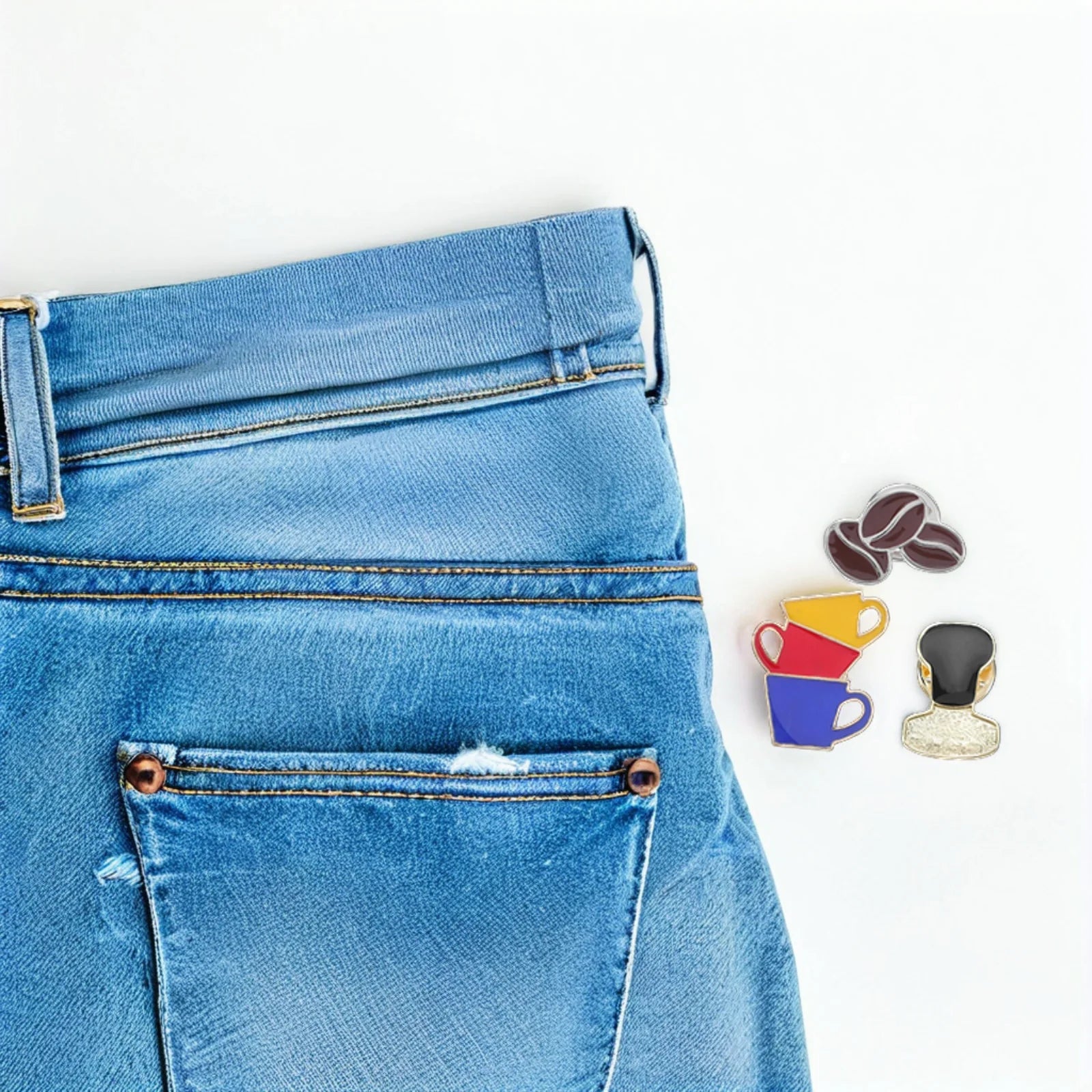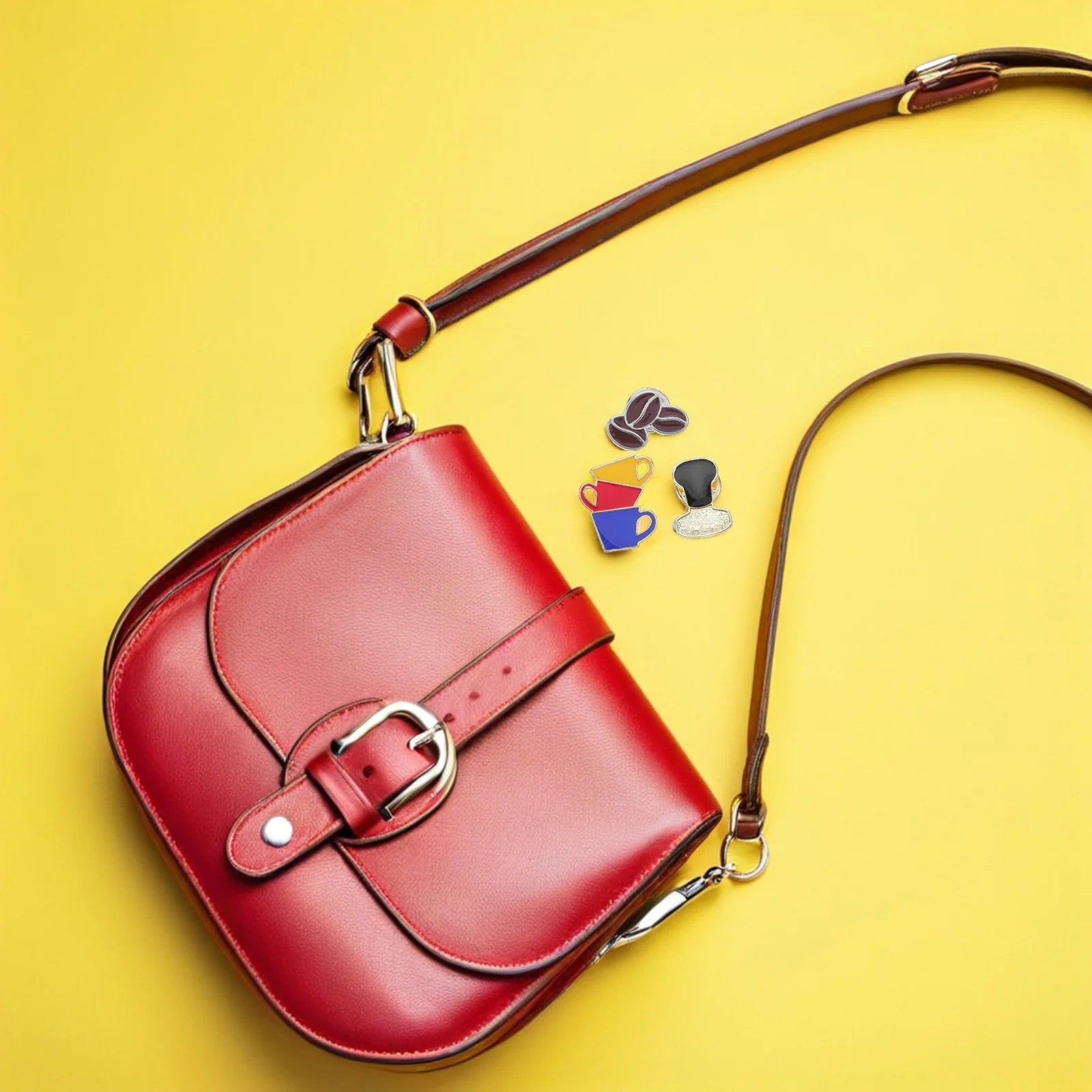 This stylish set of coffee pins is suit for those who appreciate the in life. The set includes a coffee bean, a tamper, and a coffee cup, all crafted from metal with a realistic finish. These pins are ideal for adding a touch of personality to your clothing, whether it's a coat, hat, scarf, or handbag, making them a versatile addition to your accessory collection. cartoon coffee cup brooch
