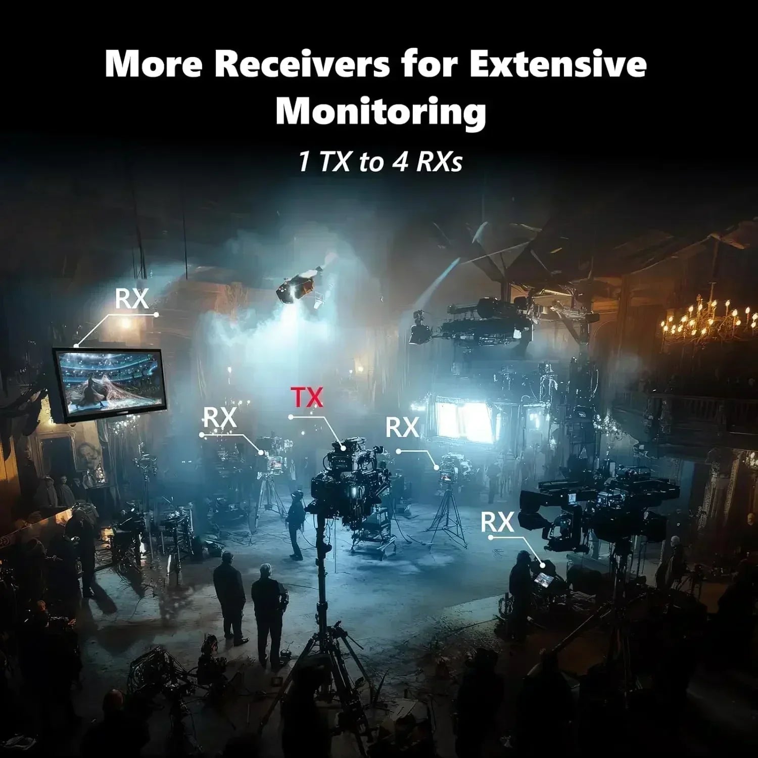 Enhanced with 4K transmission, one transmitterand can match up to four receivers.