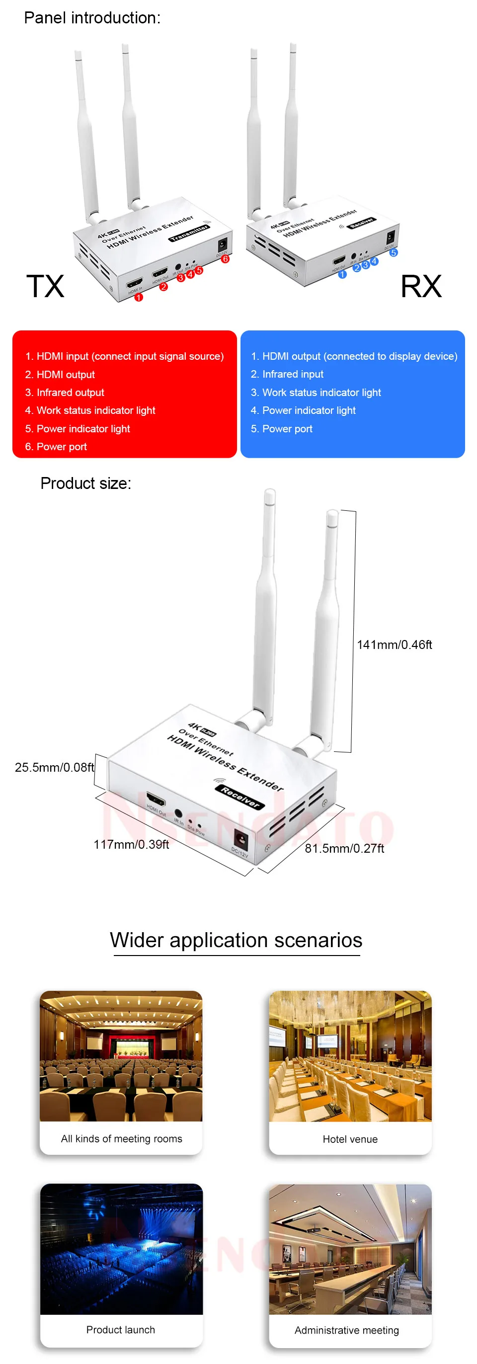 cover the entire conference room or room in the home,This means you don't have to buy a long HDMI cable to extend video signals.