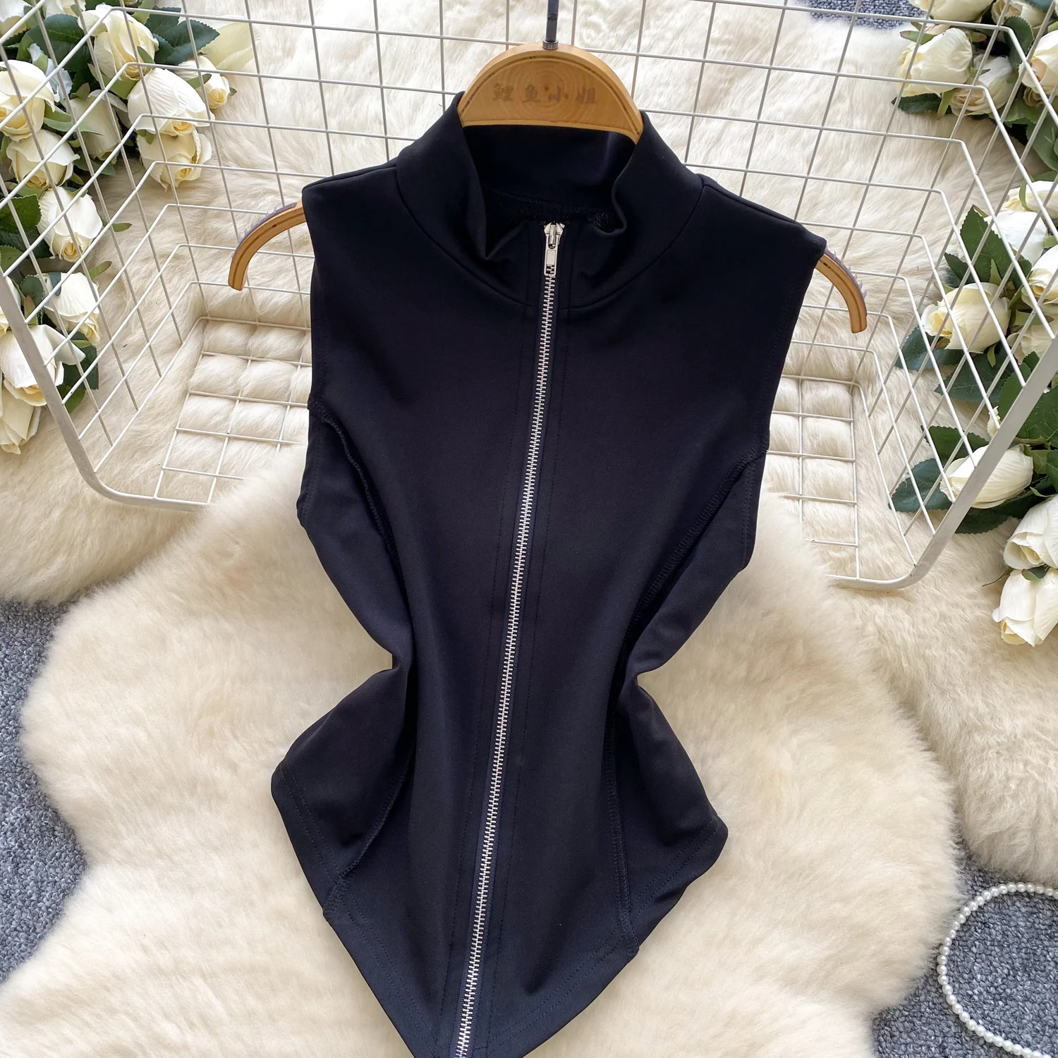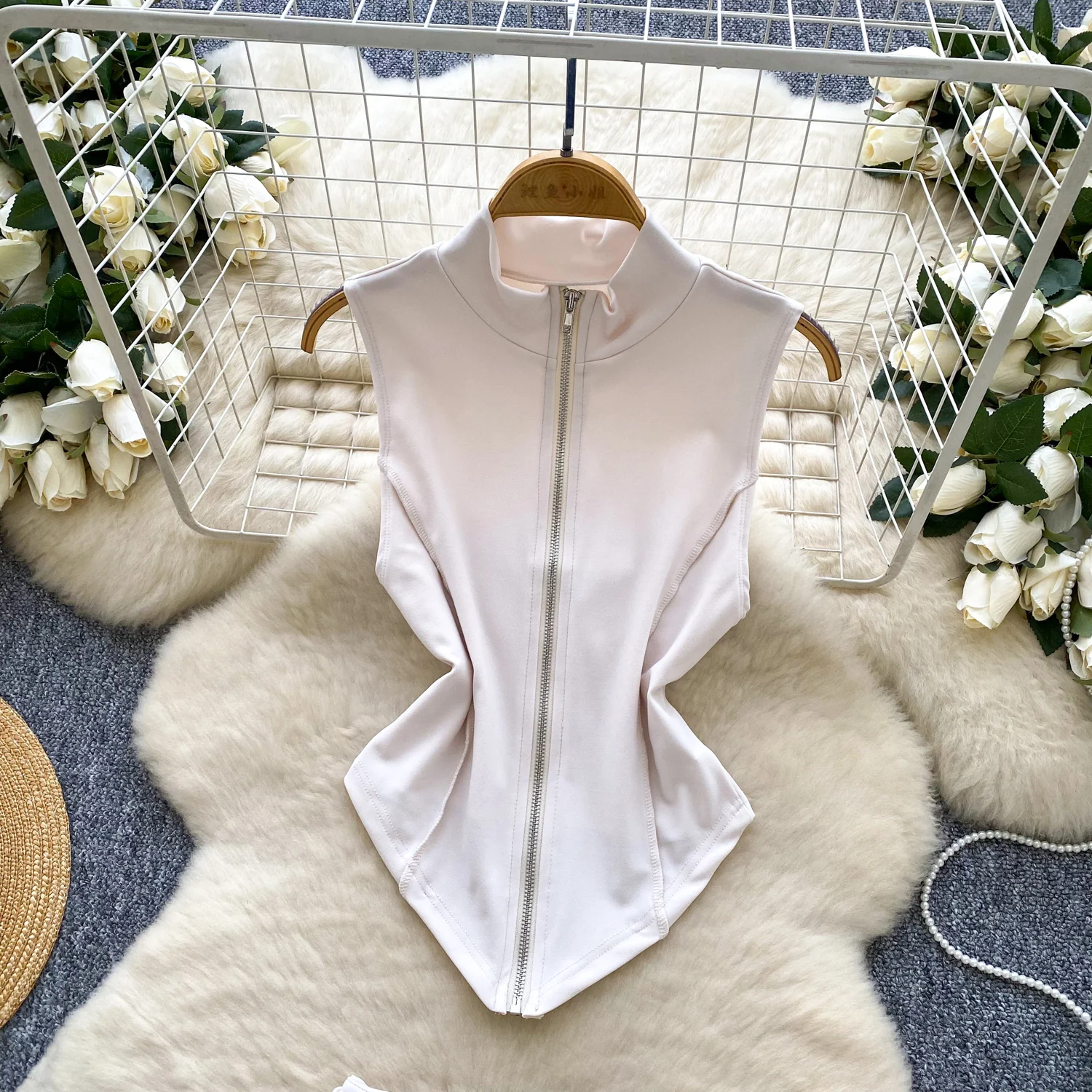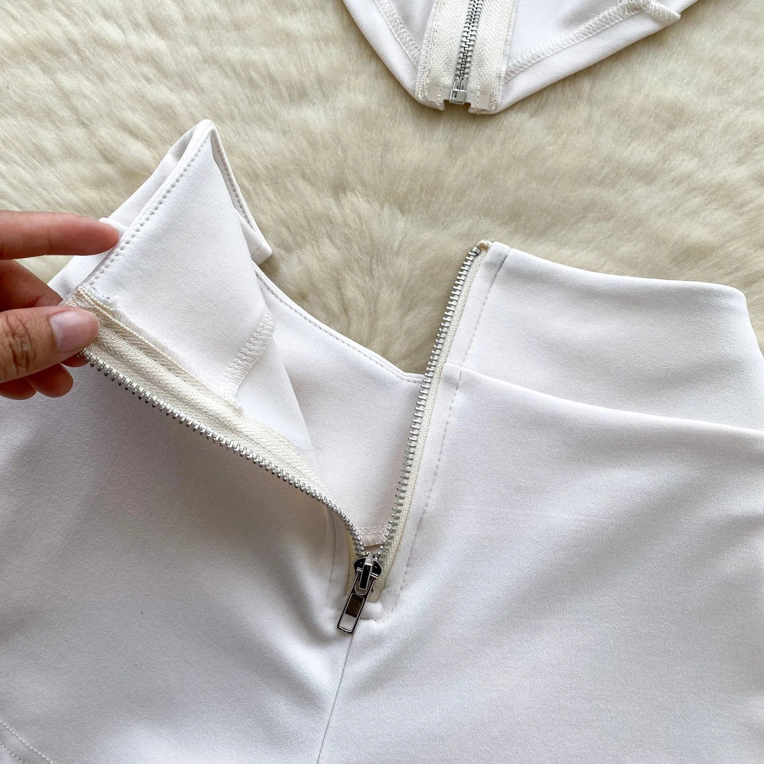 Female Zipper Stand Neck Top Shorts 2pcs Sets Women Summer Slim Stretch Sexy Party Nightclub Date Cafe Streetwear Solid Hot Sets