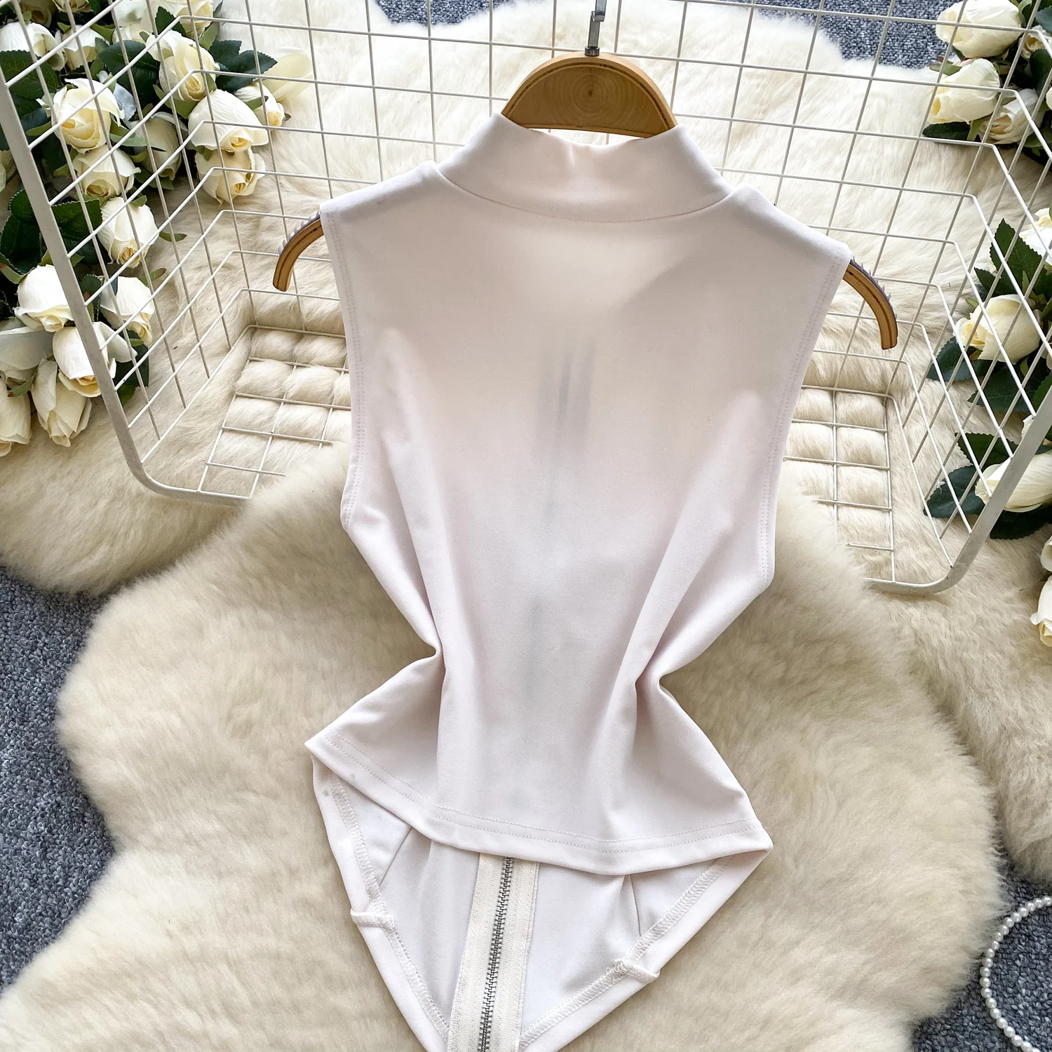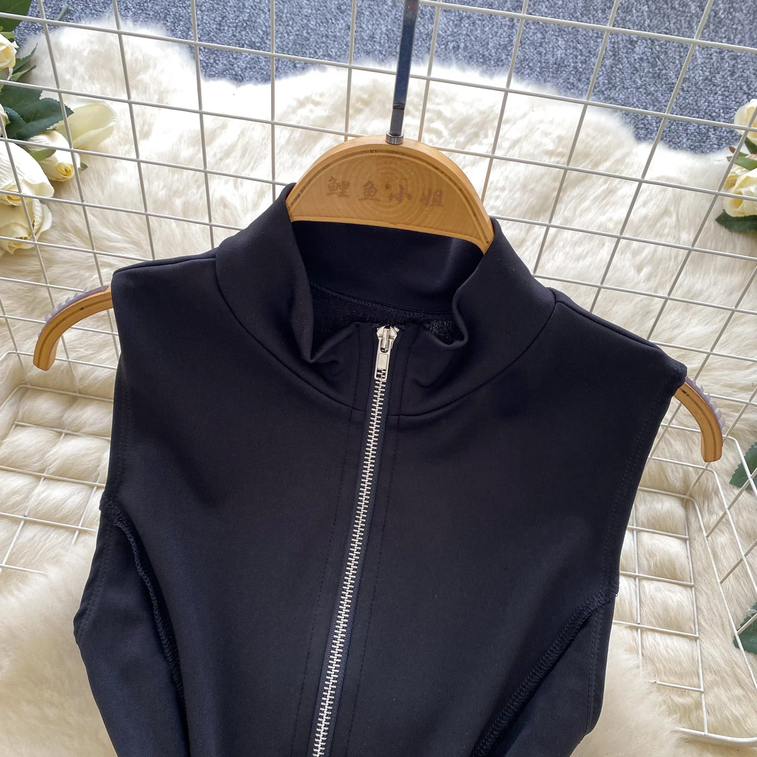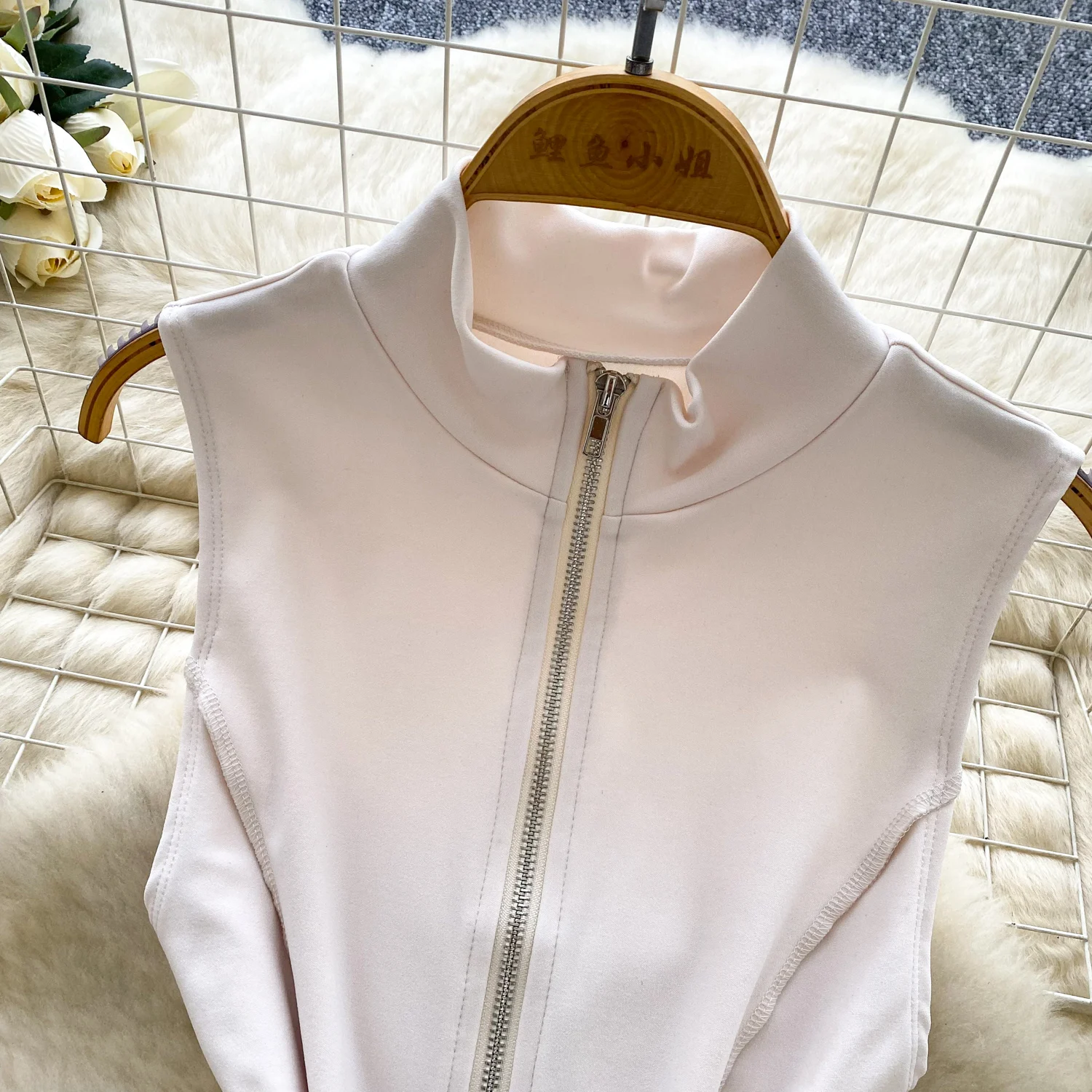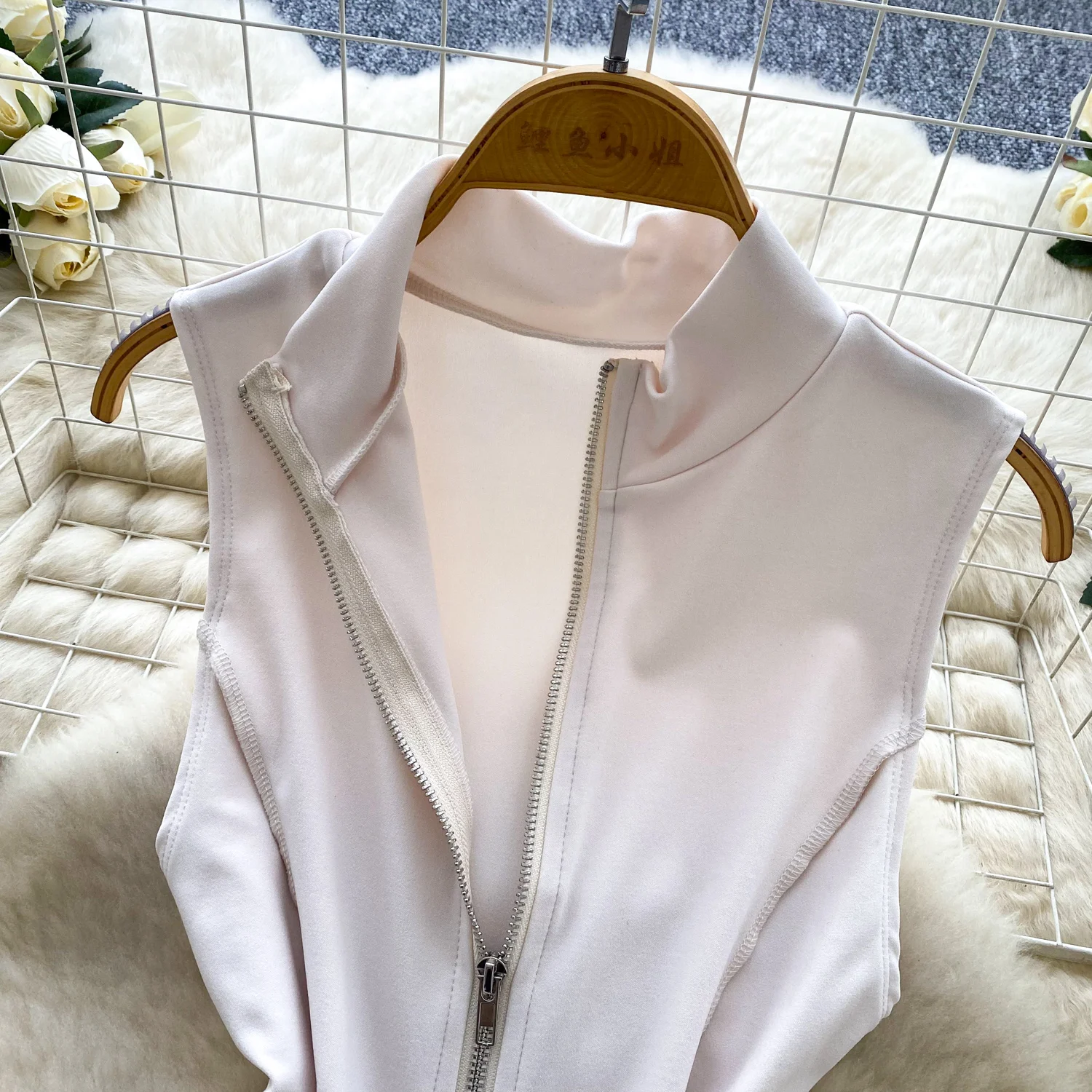 Female Zipper Stand Neck Top Shorts 2pcs Sets Women Summer Slim Stretch Sexy Party Nightclub Date Cafe Streetwear Solid Hot Sets