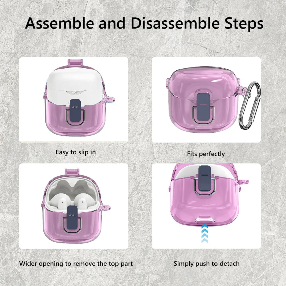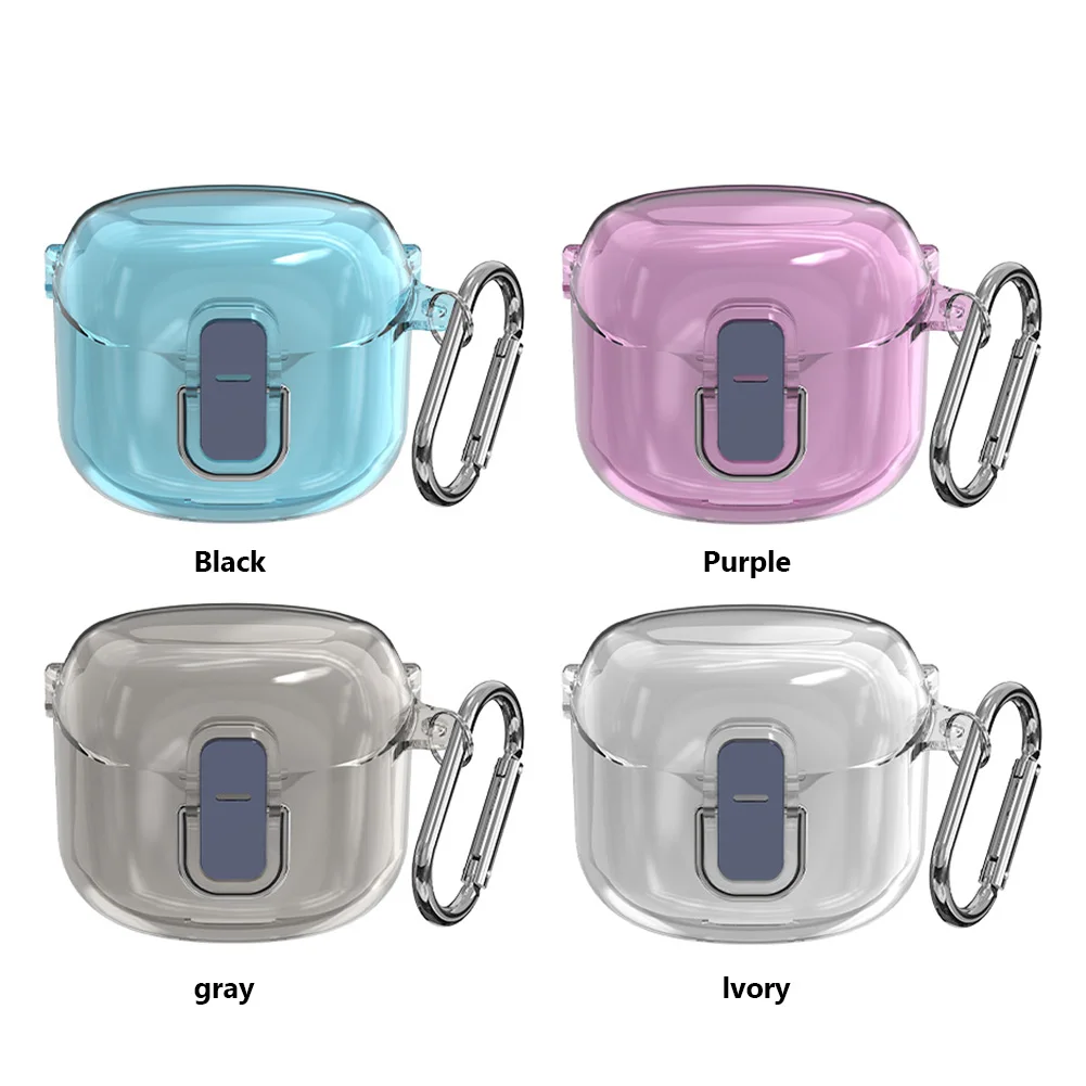 Protective Case Shockproof Hard PC Shell Clear Case Cover Earbuds Skin Cover Anti-drop Waterproof with Carabiner for JBL Tune Flex 2023 Wireless Earbuds