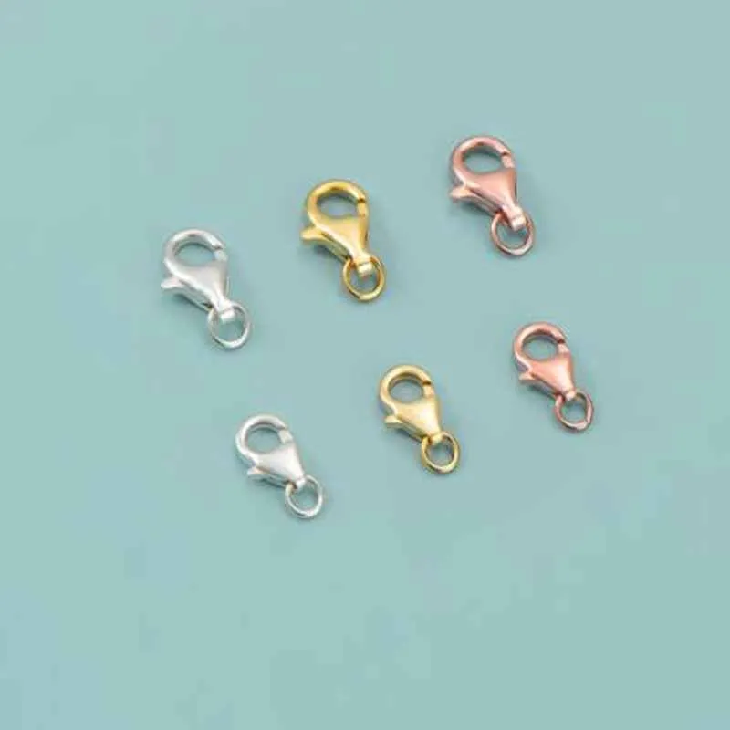 2pcs Genuine Real Pure Solid 925 Sterling Silver Lobster Buckle Clasps Claw Gold Buckles Connector Jewelry Making Findings