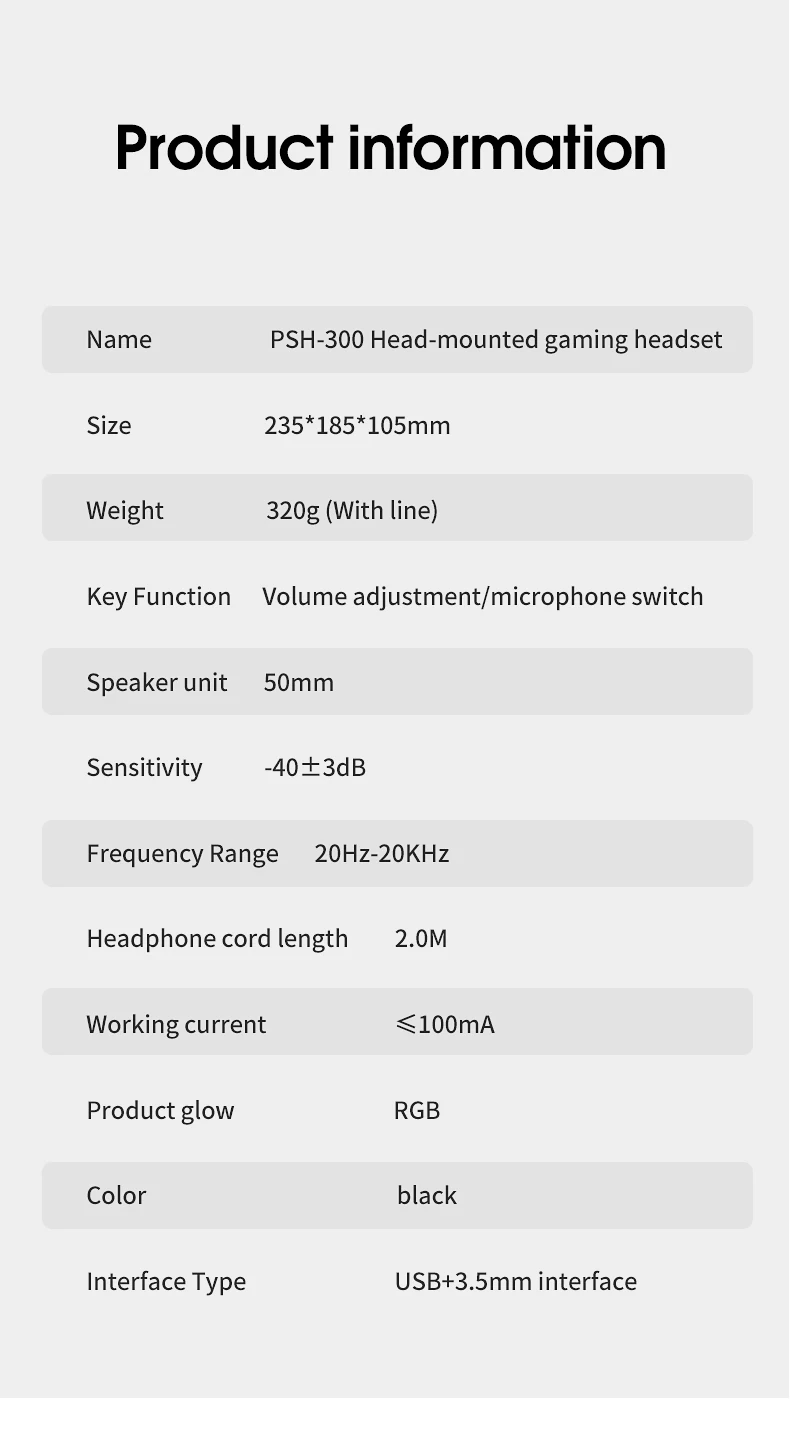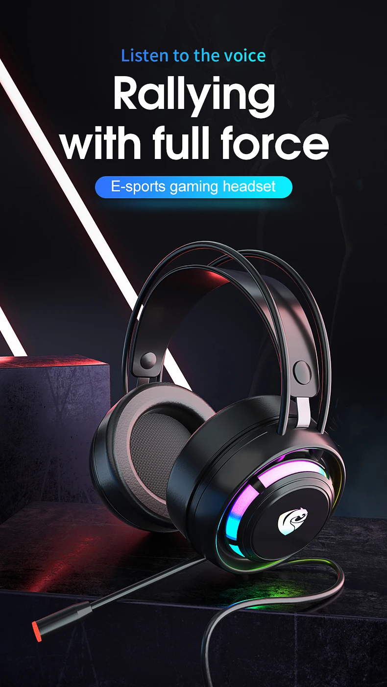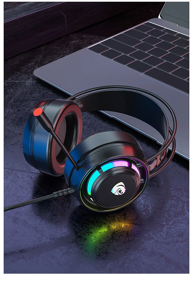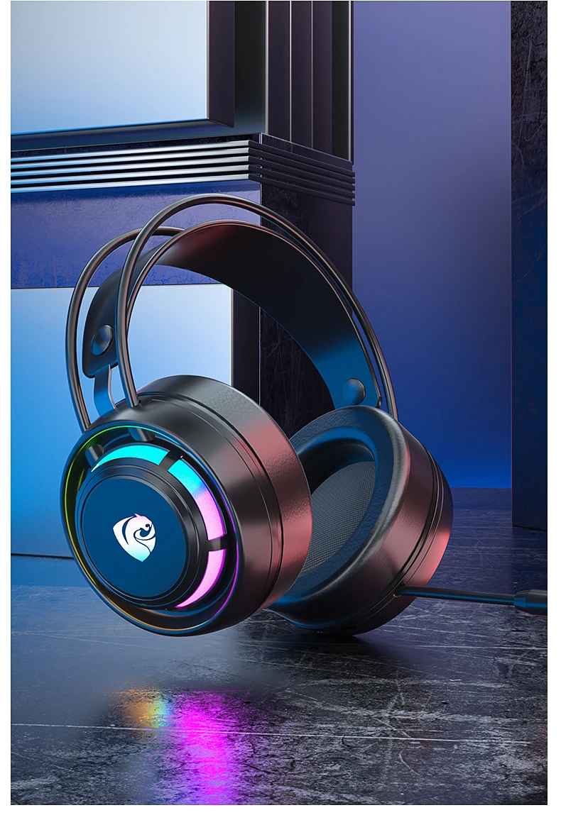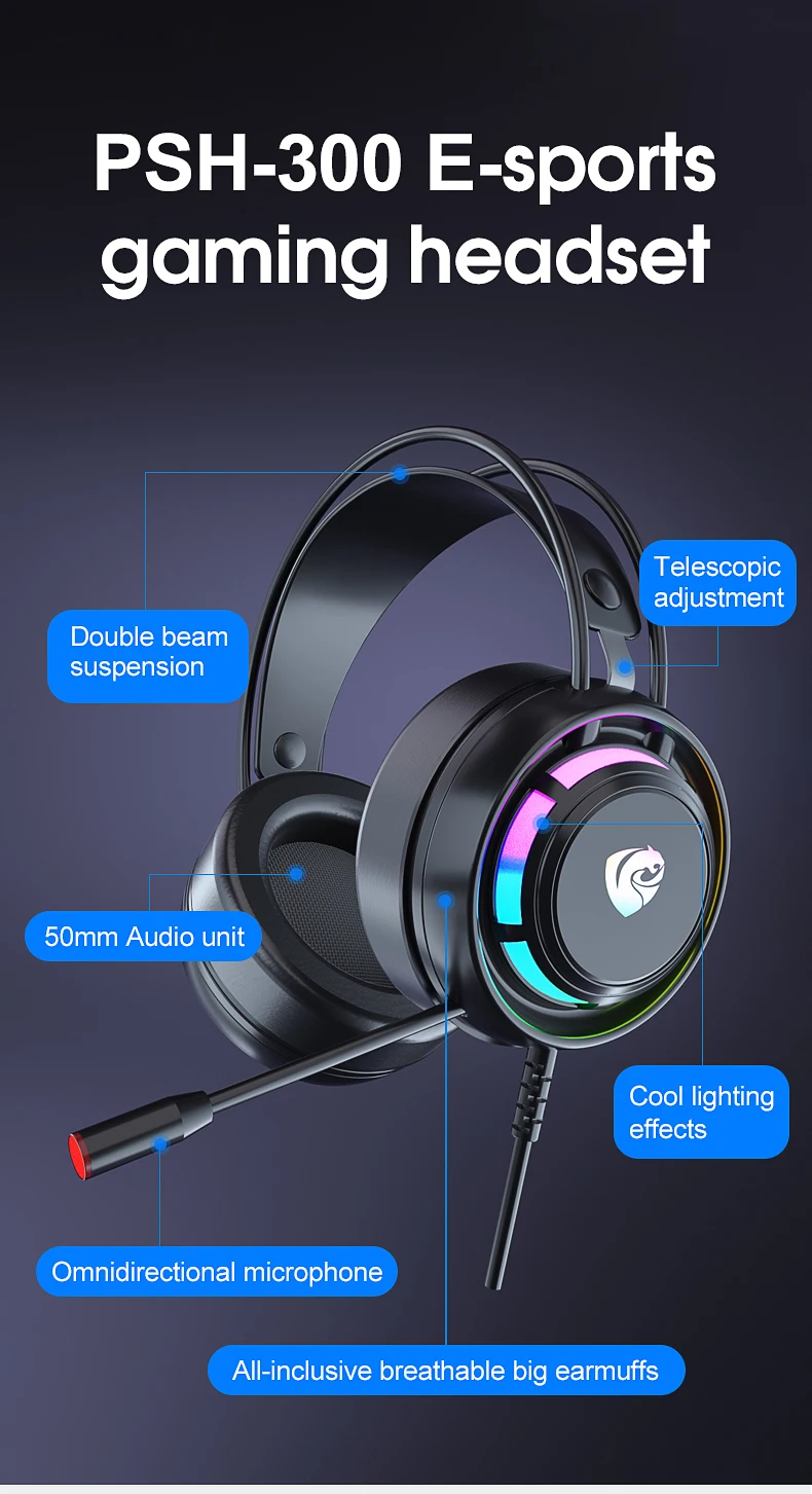 Hearing Recognition With Noise-Cancelling PSH-300 Microphone RGB Esports Games Dazzling Bald Head Wearing Wired Stereo Headphone