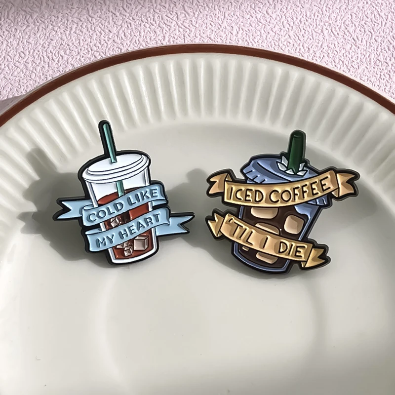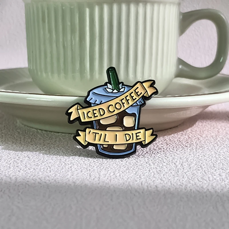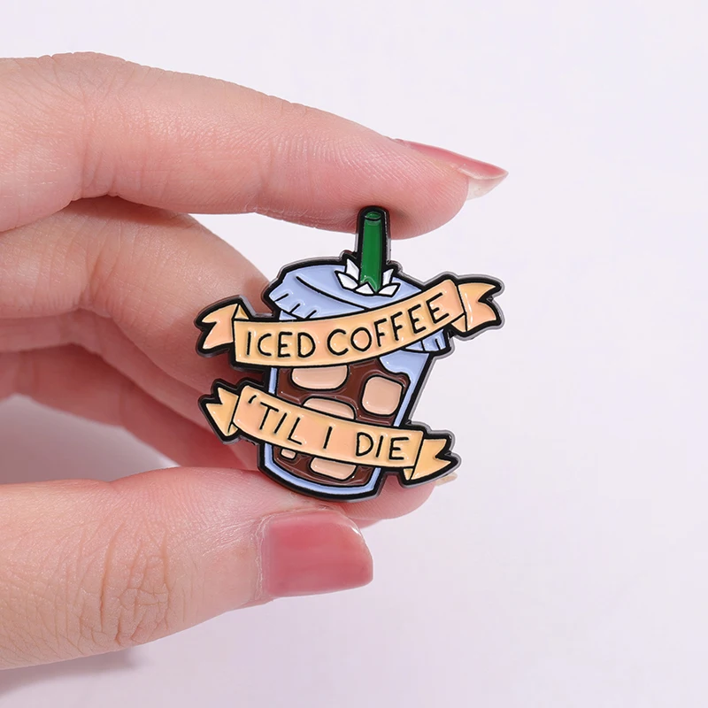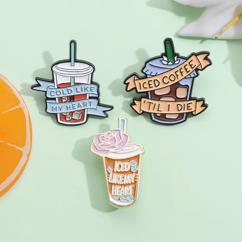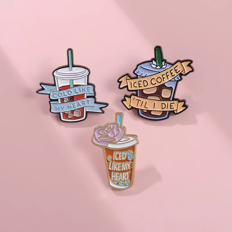 Iced Coffee Like My Heart Enamel Pin Collection Iced Coffee Til I Die Brooch Lapel Badge Coffee Addict Jewelry For Cafe Lover