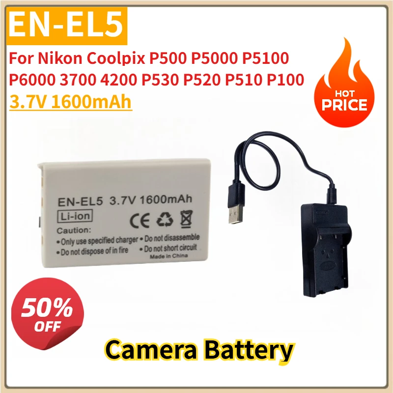 New EN-EL5 ENEL5 3.7V 1600mAh Replacement Camera Battery with charger for Nikon Coolpix P500 P5000 P5100 P6000 3700 4200 P530 P520 P510 P100
