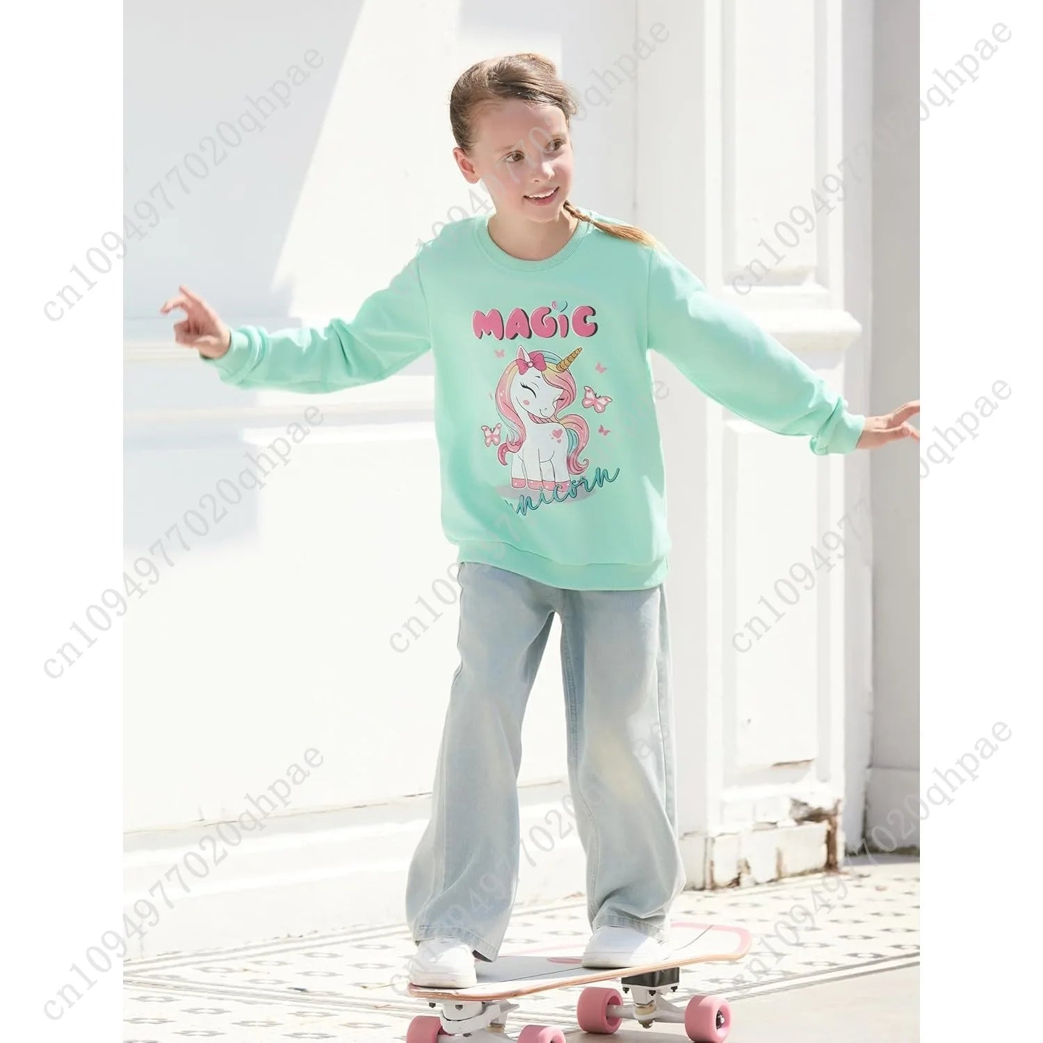 PATPAT Girls Sweatshirts Size 5-14 Years Graphic Pullover Long Sleeve Crewneck Shirt Cute Cartoon Casual Clothes for Girls