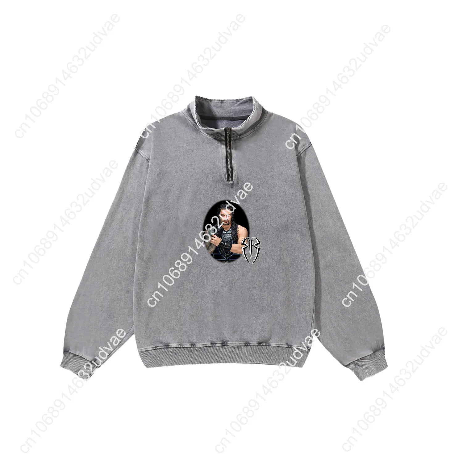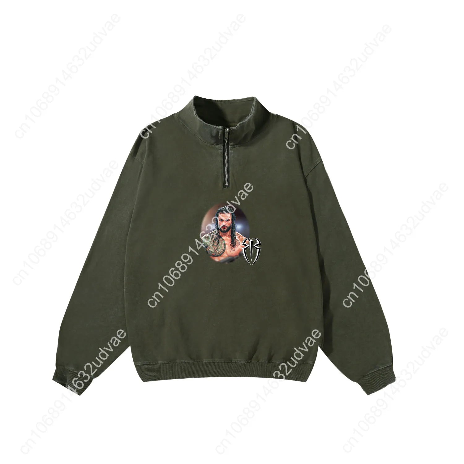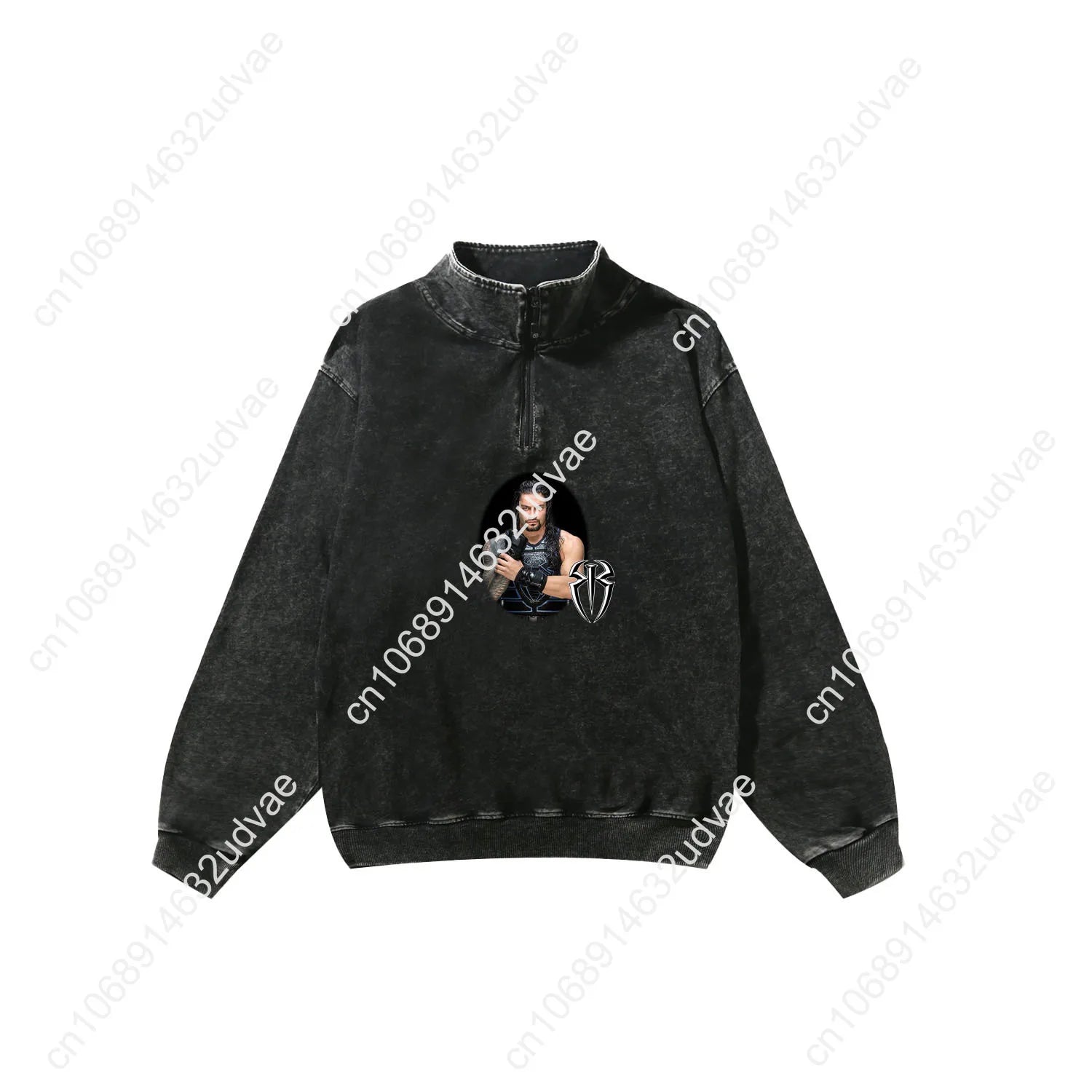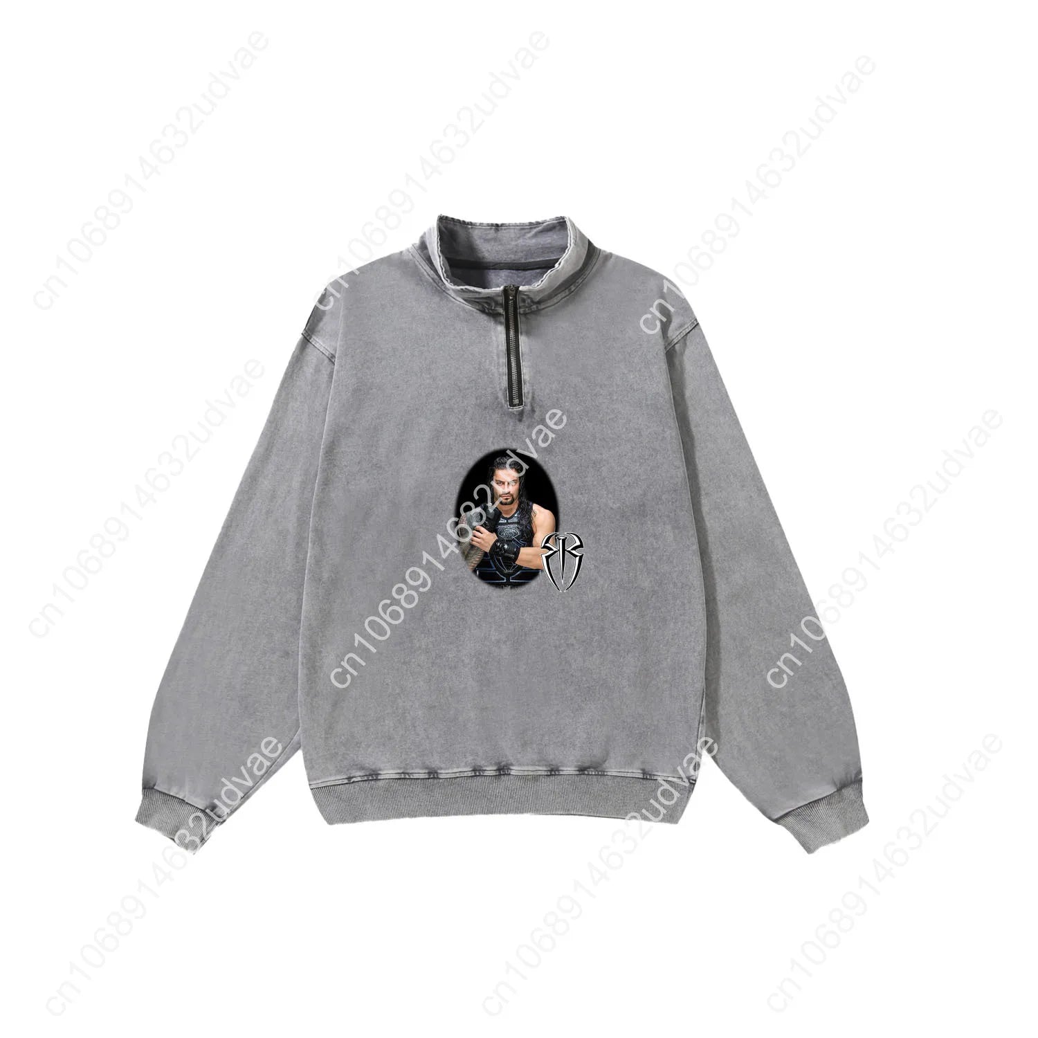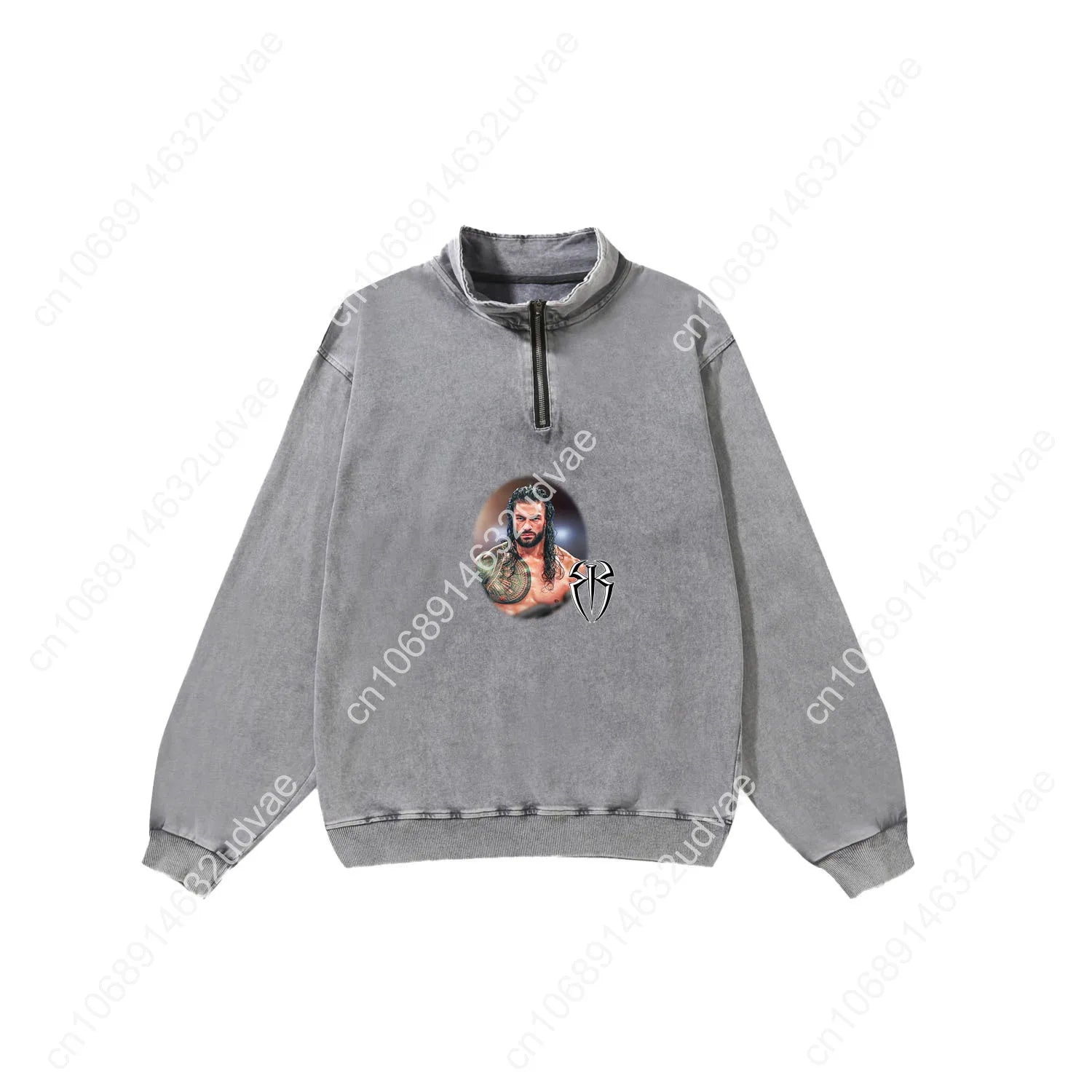 Roman Reigns Retro Sweatshirt Man Woman Teenager Vintage Pullover Half Zipper Sweat Shirt Photo Custom Made Tops Sleeved Tshirt