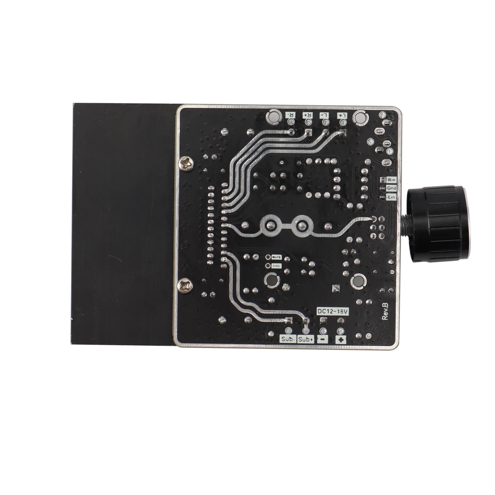 Product category: Class AB 2.1 channel digital power amplifier Working voltage: DC 9V-18V Output power: maximum 80W x 2 stereo (18V/4 ohm) and 120W x 1 pure bass (18V/4 ohm); Impedance: support 2 ohm, 4 ohm, 6 ohm, 8 ohm speakers Audio input mode: 3.5mm audio line input, or 3P-2.54mm terminal input Protection function: power input reverse connection protection, short circuit protection, overheating protection, overcurrent protection. colour: black Material: plastic Package Contents: 1 x Amplifier Audio Board Only the above package content, other products are not included. Note: Light and different displays may cause the color of the item in the picture a little different from the real thing. The measurement allowed error is +/- 1-3cm.