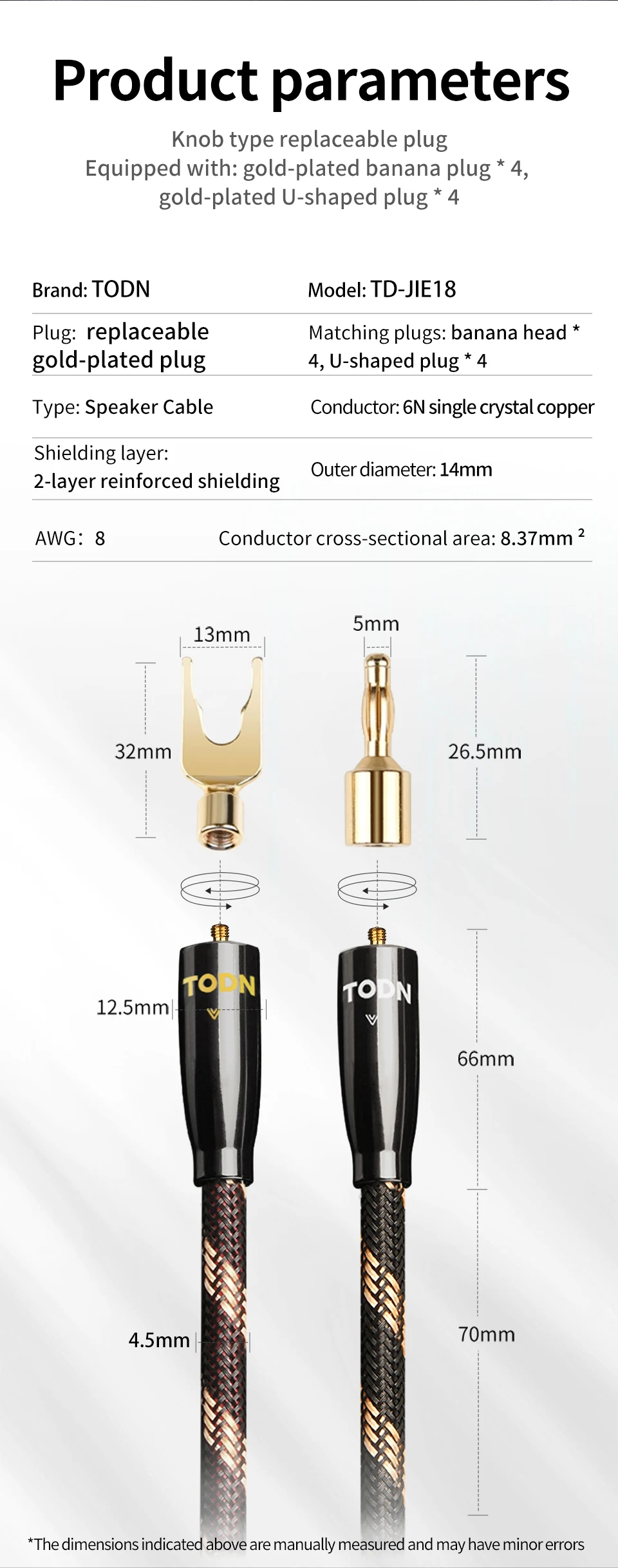 TODN 1 pair speaker cable high end hifi audio cable 6N OCC speakers CABL replaceable banana plug Yplug Connecting the amplifier