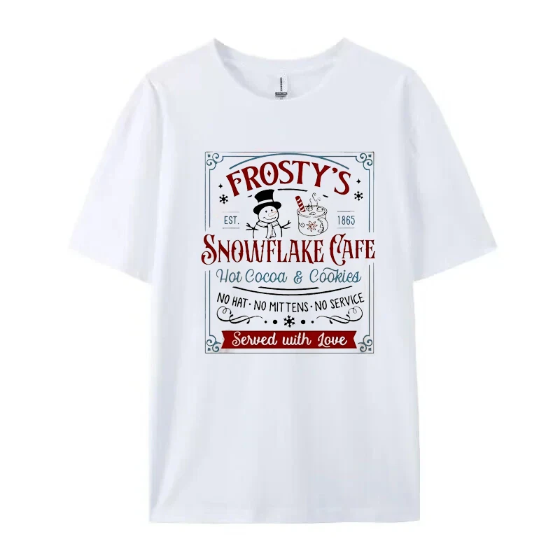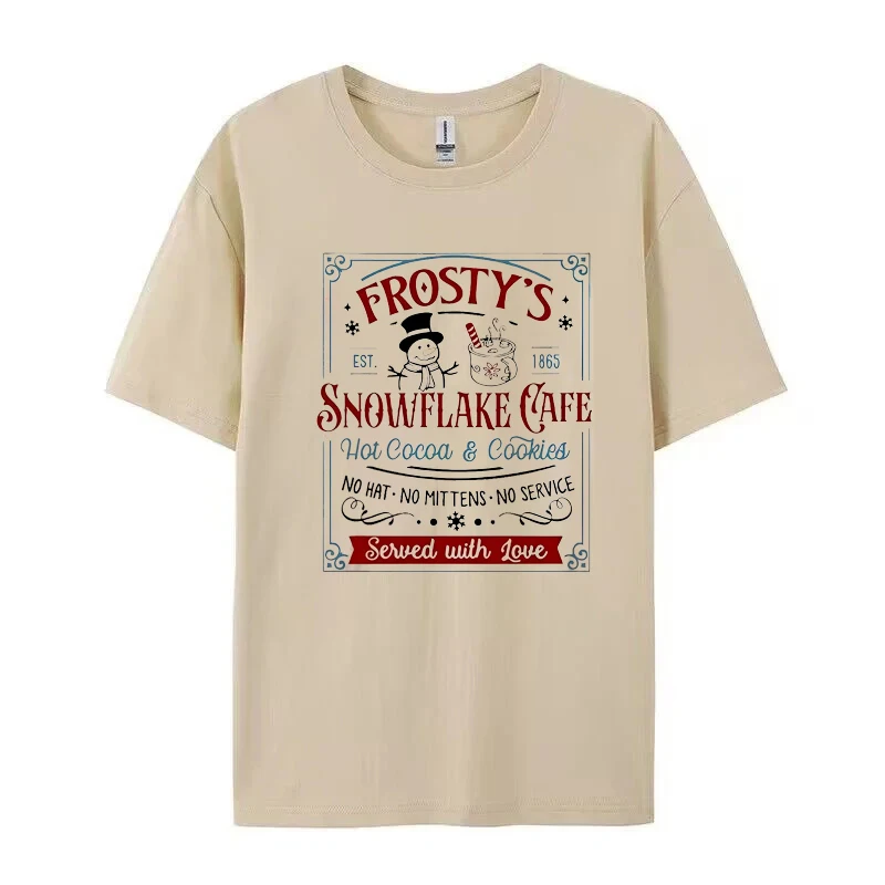 Women's Vintage Frosty Snowflake Cookie Graphic T-Shirt Pastel Pink Retro Cafe Tee for Parties Outfits Ladies Short Sleeve Shirt