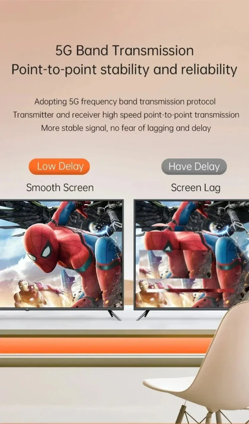 【Plug and Play】Get up and running in 20 seconds with a true plug-and-play experience. Connect the transmitter to the HDMI source, then connect the receiver to the secondary HDTV, and you are ready to go. Operates on standard 802.11 5GHz.