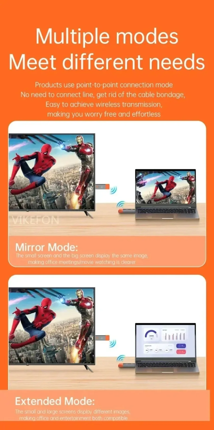 【Highly Compatible】HDMI interface is highly compatible and can be convertible to other interfaces. VIKEFON The device with HDMI interface can be used directly, and the device without HDMI interface can be used with HDMI converter. Wirelessly stream true 1080p high definition 3D video & digital audio to your TV or projector. Watch movies & TV shows from your laptop, PC, MacBook, iPad Pro, A/V receiver, gaming console, PS4/5, Xbox, Nintendo Switch, cable/satellite
